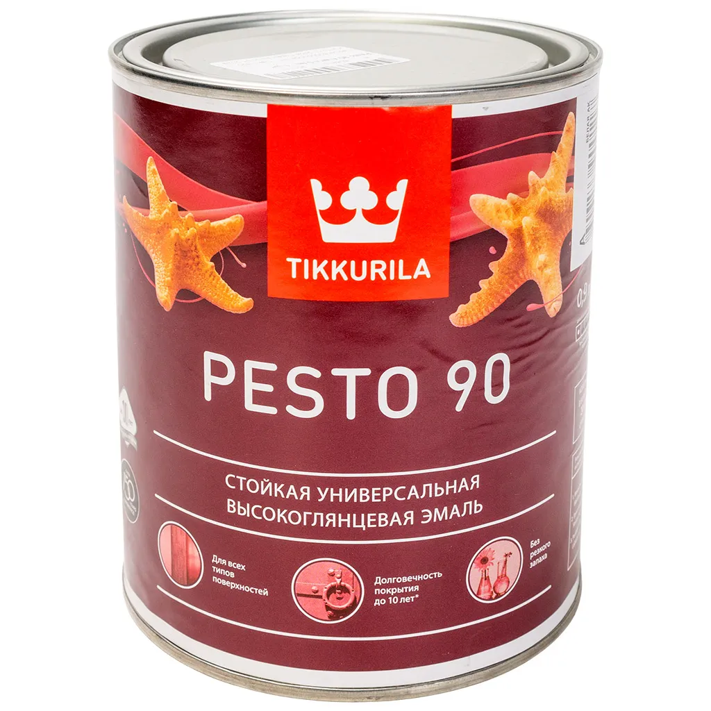 Эмаль алкидная Tikkurila Pesto 90 белая, высокоглянцевая, база А, 0.9л