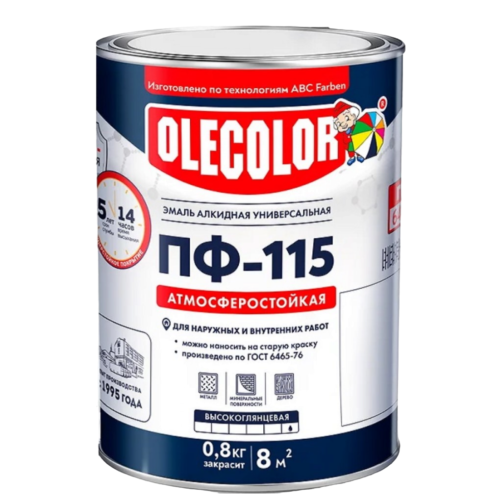 Эмаль алкидная Olecolor, предназначена для окраски деревянных, металлических и других поверхностей, подвергающихся атмосферным воздействиям, а также для окраски внутри помещений.