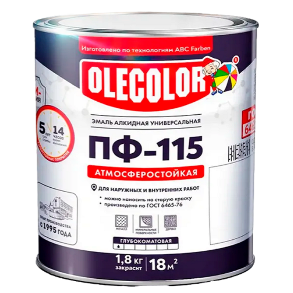 Эмаль алкидная Olecolor, предназначена для окраски деревянных, металлических и других поверхностей, подвергающихся атмосферным воздействиям, а также для окраски внутри помещений.