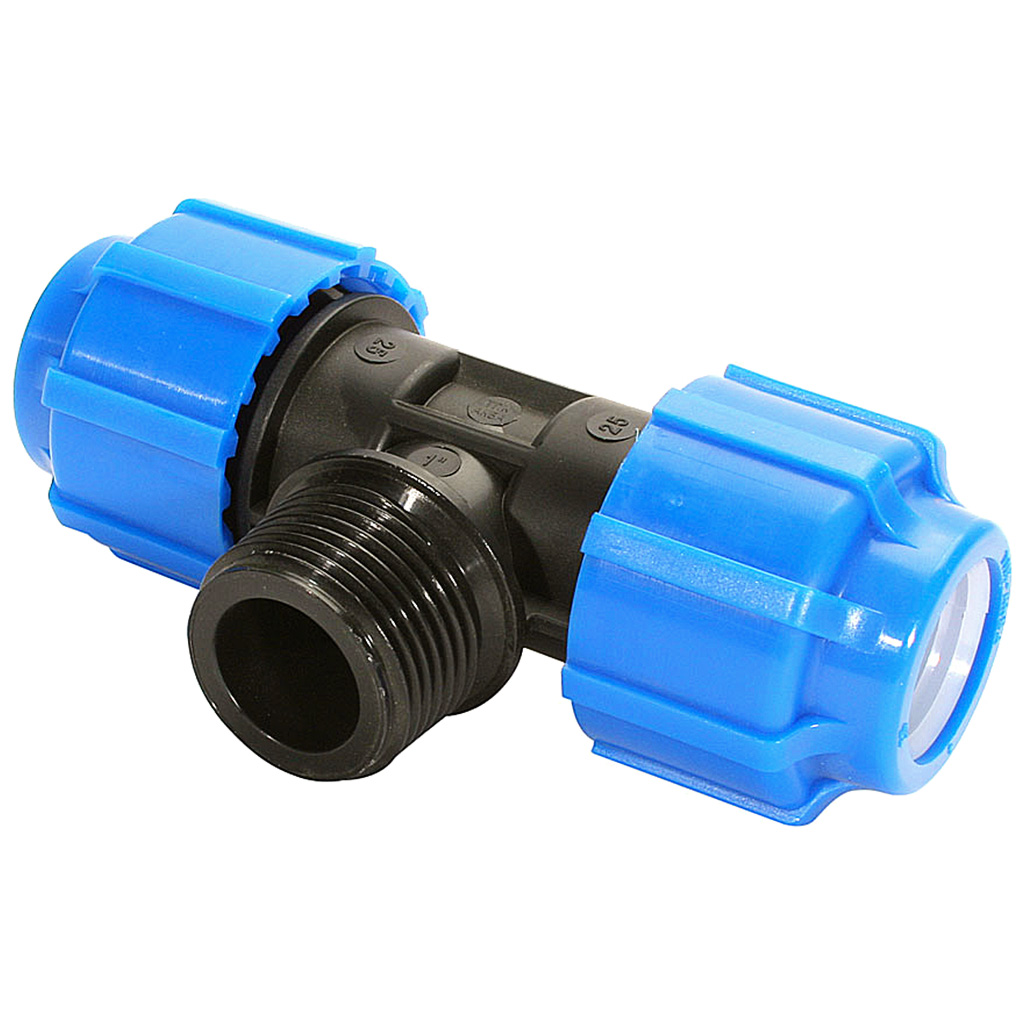 Тройник ПНД, ДУ25 х 1" х ДУ25, с наружной резьбой
