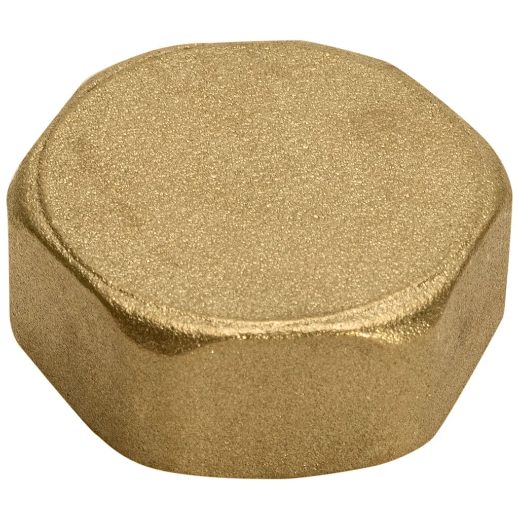 Латунная никелированная трубопроводная заглушка с шестигранной головкой, имеет внутреннюю трубную цилиндрическую резьбу совместимую также с наружной конической трубной резьбой.