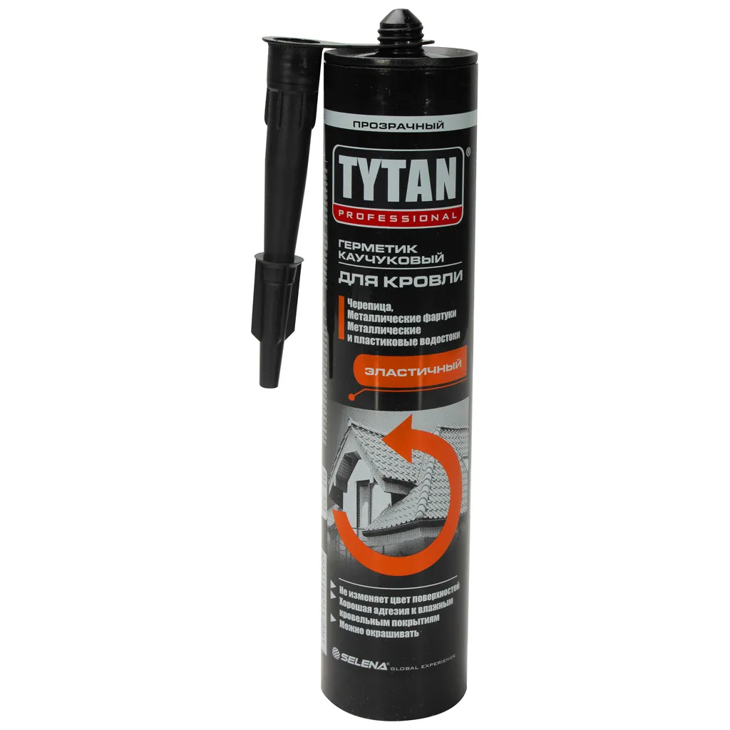 Каучуковый герметик для кровли TYTAN PROFESSIONAL подойдет для различных видов кровельной черепицы, фартуков, металлических и ПВХ водостоков, сливных труб. Герметик создает эластичный шов.