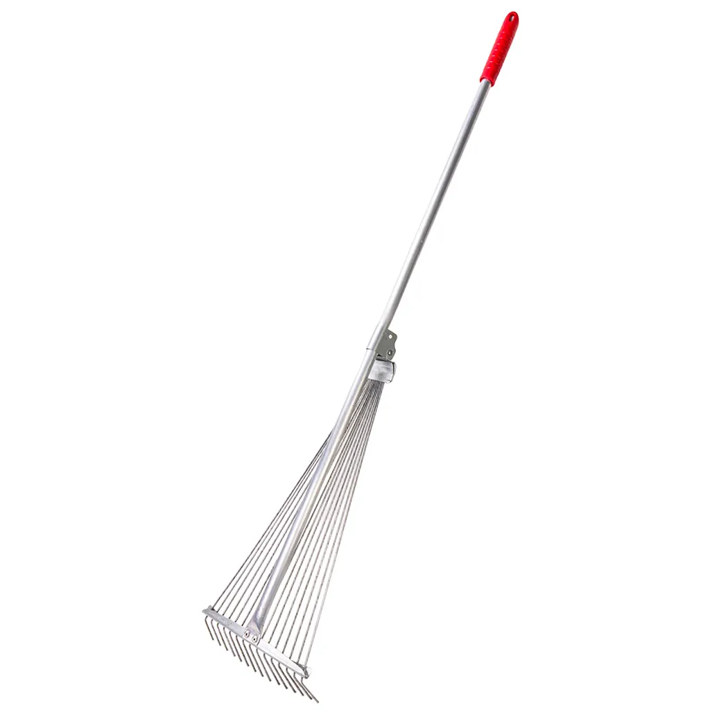 Грабли веерные, используется для сбора мусора на садовых участках, грядках и газонах. Зубья из толстой проволоки способствуют тщательному сбору листвы и мусора, препятствуя при этом повреждению проросших растений. Выполнены из оцинкованной стали, устойчивой к механическим повреждениям и коррозии. Для удобства удержания инструмента предусмотрена рукоятка из алюминия. Распорка на рабочей части инструмента обеспечивает дополнительную защиту от повреждений. Конструкция грабель позволяет самостоятельно регулировать ширину захвата и расстояние между зубьями.