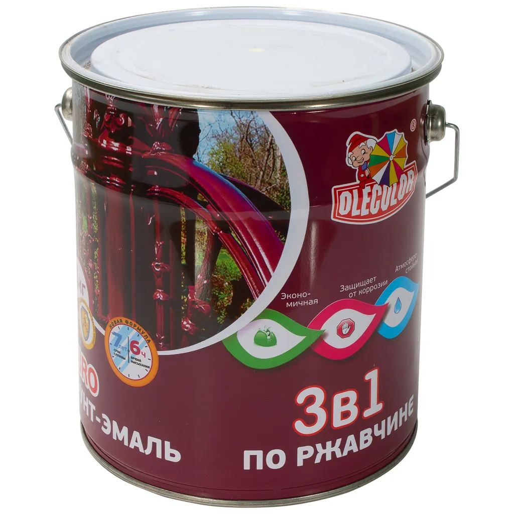 Грунт- эмаль Olecolor, предназначена для преобразования ржавчины, грунтования и окраски чистых и прокорродировавших металлических поверхностей, а также для окраски деревянных и других поверхностей внутри и снаружи помещений всех типов зданий и сооружений.