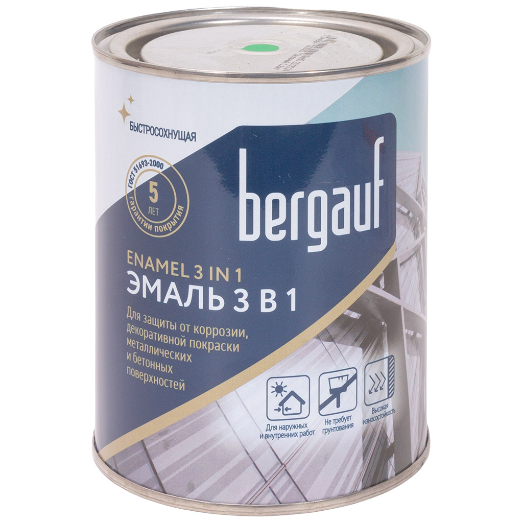 Грунт-эмаль по ржавчине 3в1, Bergauf Enamel зеленая, 0,8кг