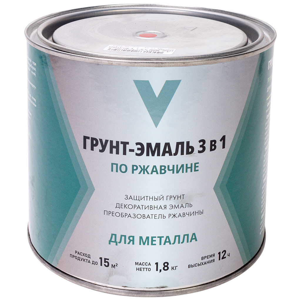 Грунт-эмаль "V" по ржавчине 3в1, красная, 1,8кг
