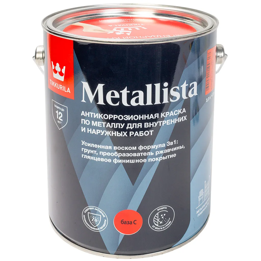 Грунт-эмаль по ржавчине 3в1 Tikkurila Metallista, белая, база C, 2.3л