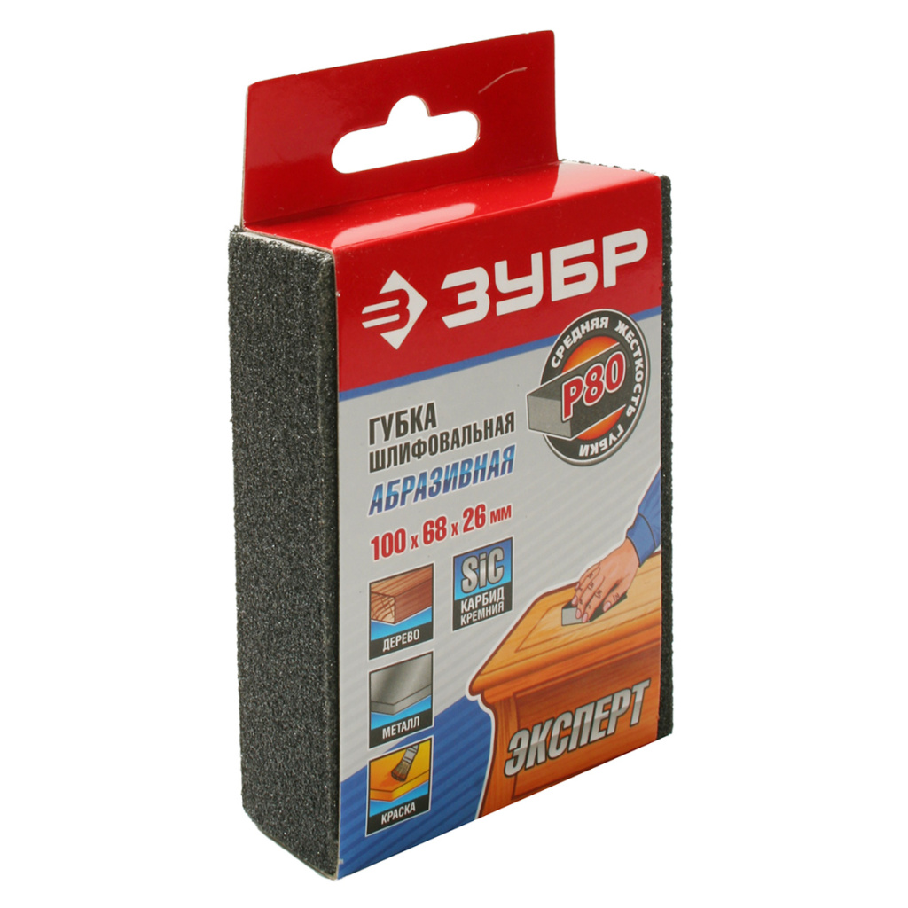 Губка шлифовальная Зубр Эксперт Р80, 100х68х26мм, четырехсторонняя