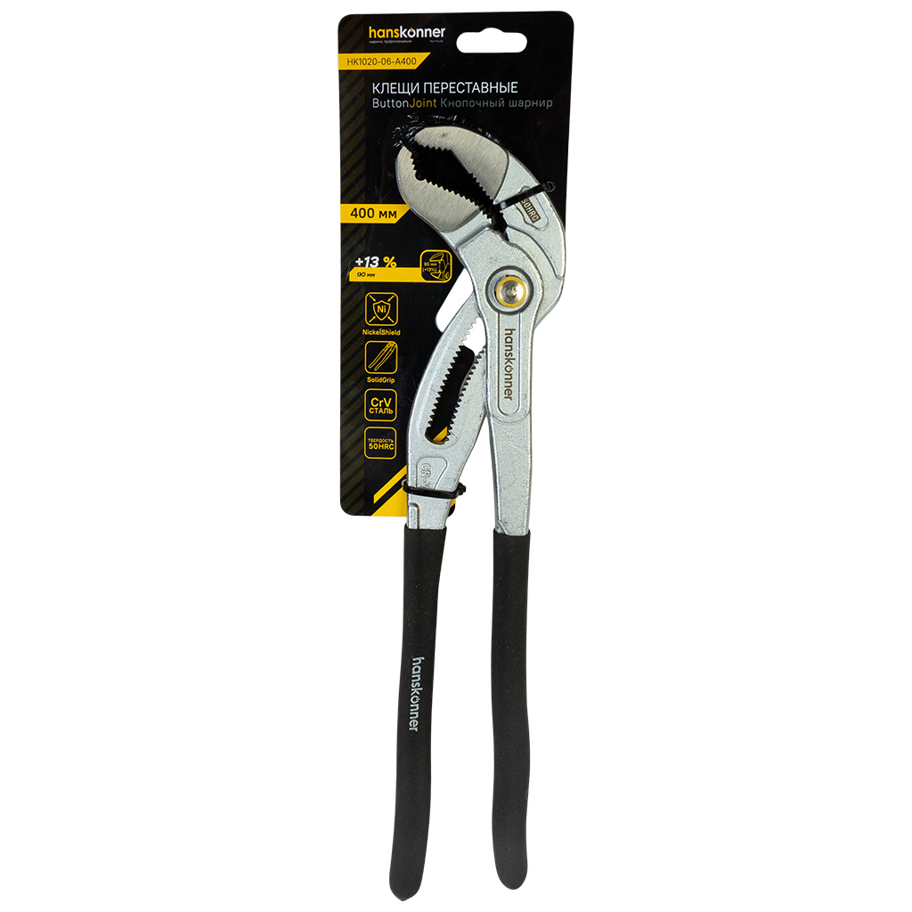 Клещи переставные Hanskonner, кнопочный шарнир, зев 90мм, 400мм