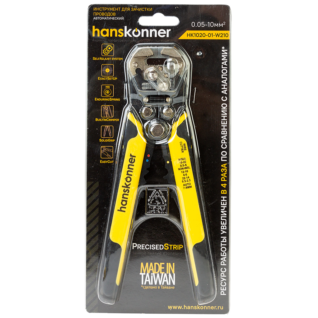 Стриппер Hanskonner, предназначен для снятия изоляции с проводов и их перекусывания. Есть встроенный кримпер для клемм.