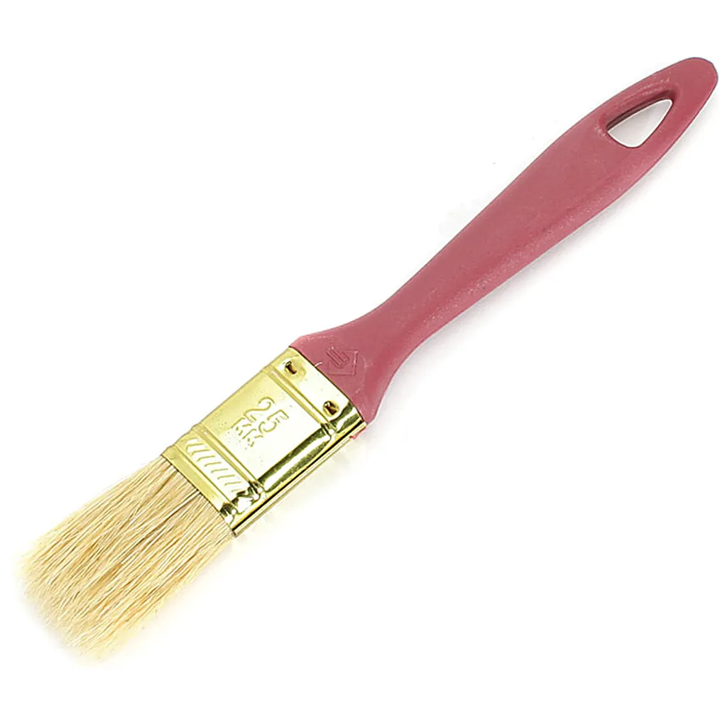 Щетина кисти надежно закреплена стальным бандажом, а наличие удобной пластмассовой рукоятки обеспечит комфортную работу.