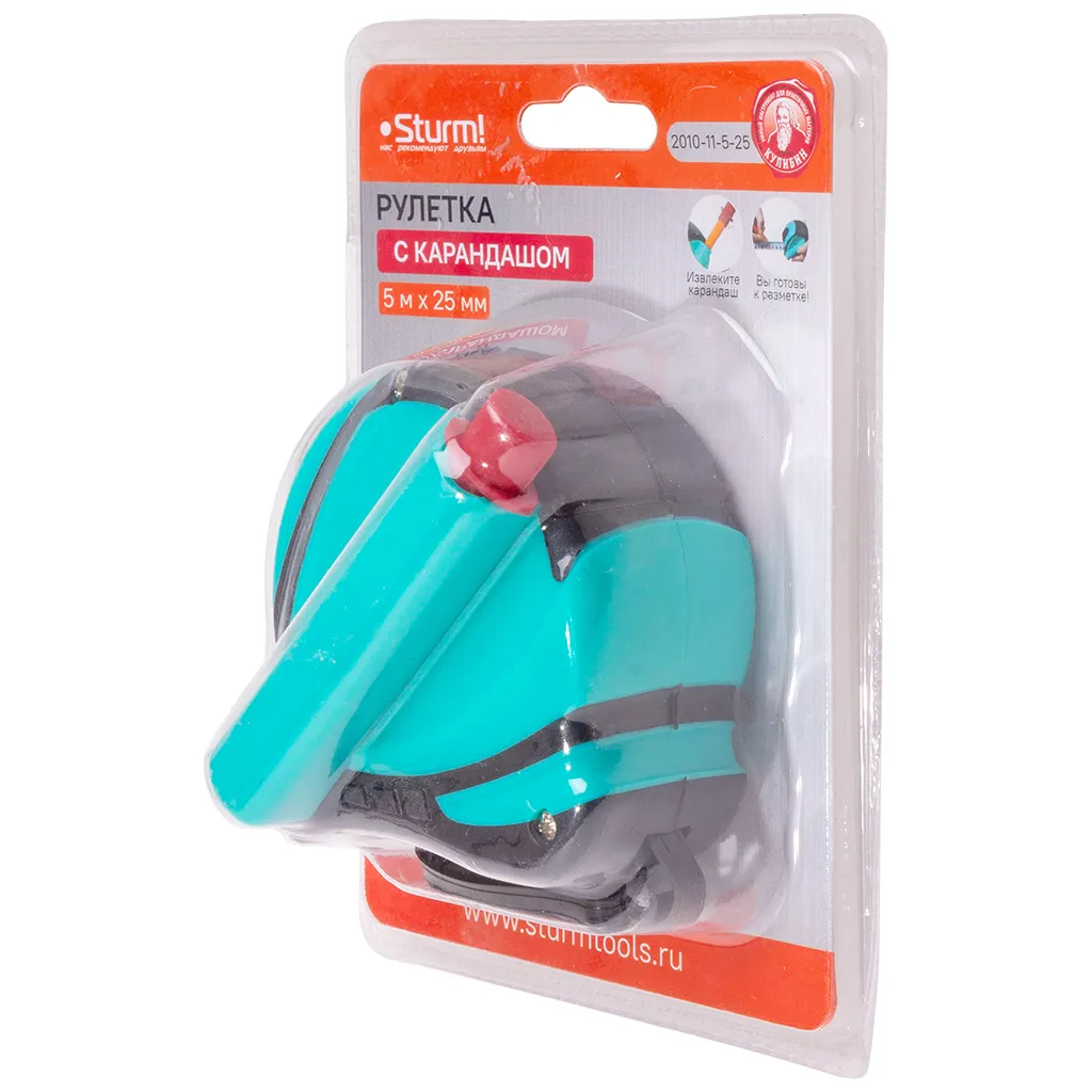 Рулетка Sturm!, 5м х25мм, с карандашом, двухсторонняя, магнит на зацепе