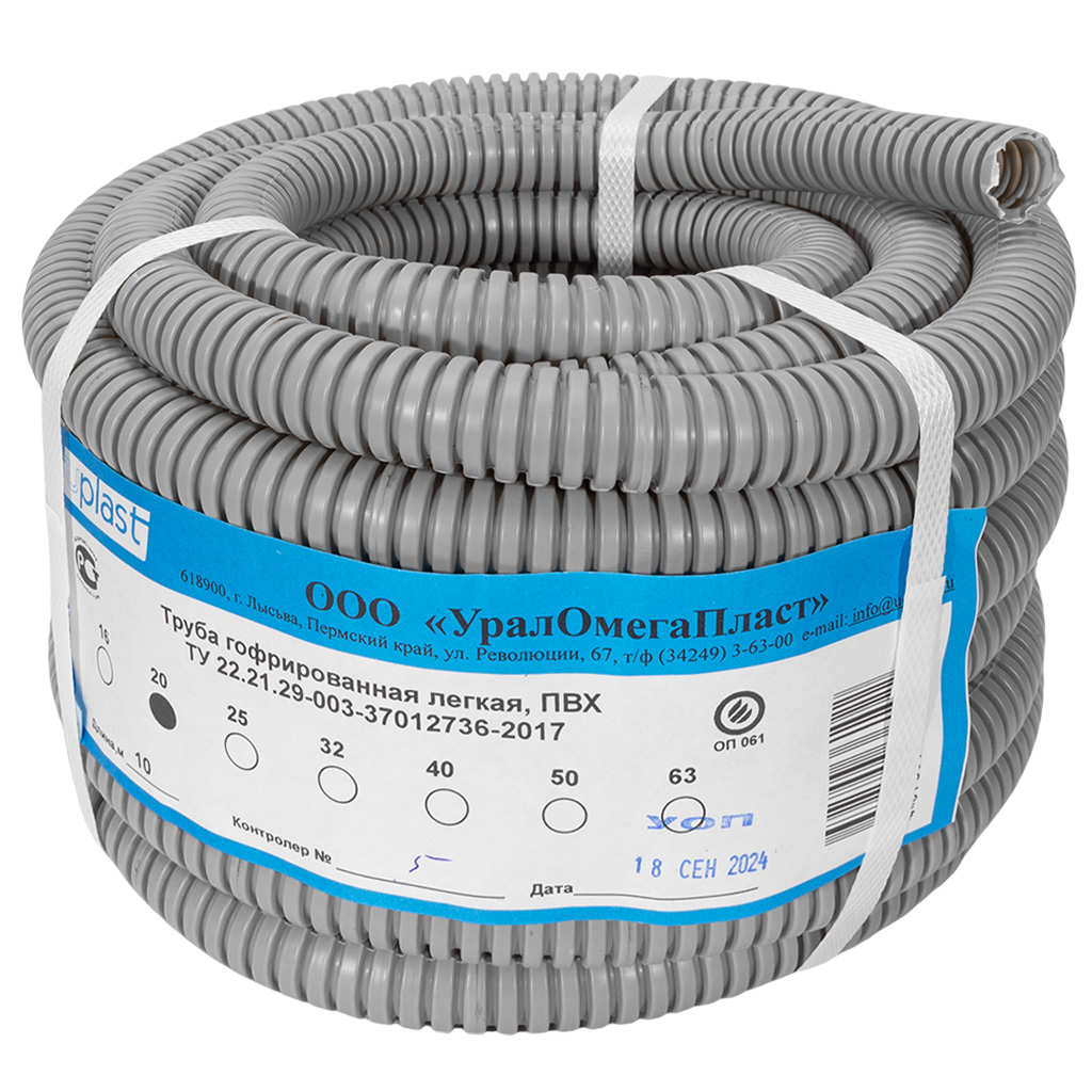 Труба ПВХ гофрированная с протяжкой Ю-пласт, D20мм, серая, 10м