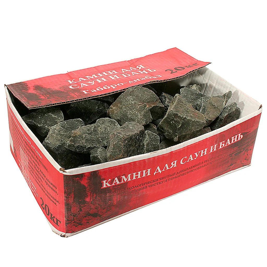 Камни для бани и сауны Габбро-Диабаз является уникальной по своим физическим свойствам вулканической породой. Габбро-Диабаз равномерно нагревается и расширяется по всей массе. Габбро-Диабаз долговечен, морозоустойчив и выдерживает резкий перепад температур без потери своих полезных свойств. Камни для бани обладает высокой плотностью и прочность (3,07 г/куб. см), низким водопоглощением (0,04%).