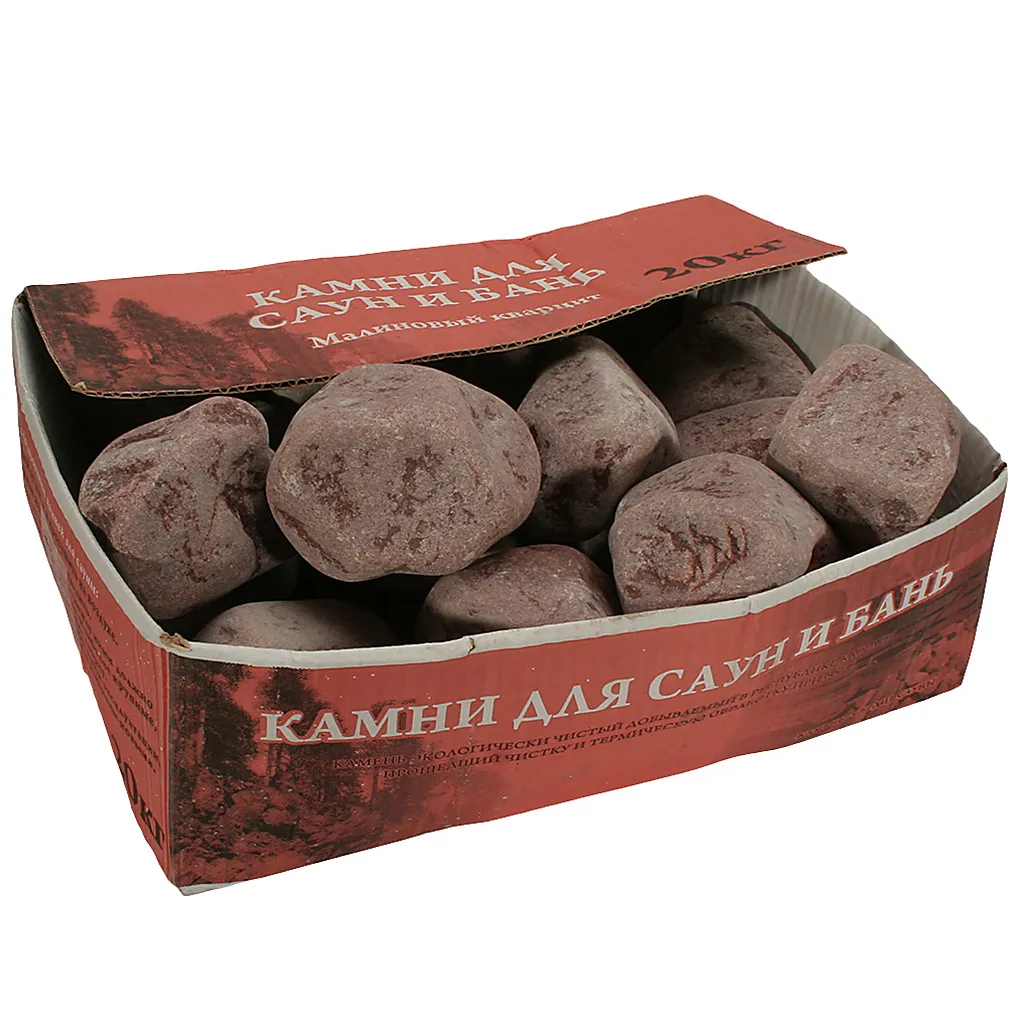Камни для бани и сауны Малиновый Кварцит, обвалованный, 20кг