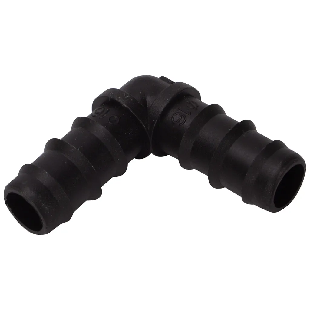 Угол используется в системе капельного полива для осуществления поворотов в 90 градусов магистральной трубы 16 мм.