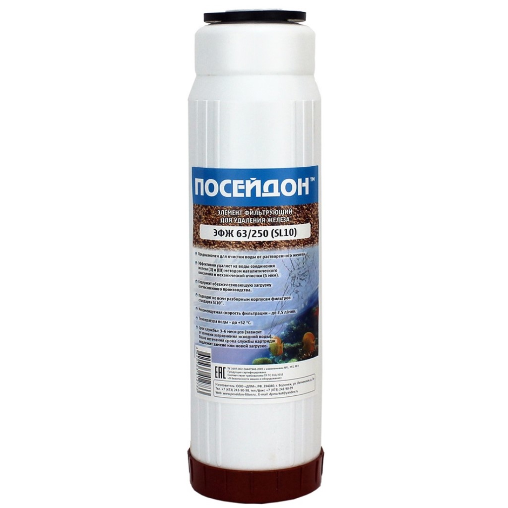 Картридж Посейдон ЭФЖ 63/250М, предназначен для использования в системах, где требуется устранение растворенного железа, марганца и сероводорода, благодаря чему значительно улучшается вкус и прозрачность воды. Изготовленный из смеси сорбентов, данный модуль демонстрирует отличные результаты в процессе обезжелезивания, что особенно актуально для регионов с высоким содержанием этих элементов в водоснабжении. При этом он обеспечивает скорость фильтрации, позволяющую получать до 2.5 литров очищенной воды в минуту, что делает его подходящим для бытового использования. Важно отметить, что данный картридж способен работать в диапазоне температуры до +52°С, что обеспечивает его универсальность и надежность в различных условиях. Ресурс модуля составляет 10 000 литров, что гарантирует длительный срок службы и минимизацию частоты замен. Использование данного продукта в трехступенчатых фильтрах позволяет эффективно улучшить качество воды, делая ее более безопасной для потребления. Таким образом, этот картридж станет отличным выбором для тех, кто ценит чистоту и качество своей питьевой воды.