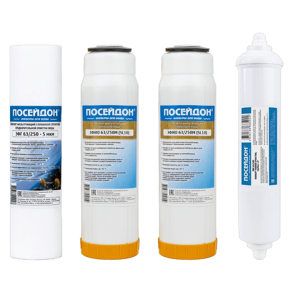 Комплект картриджей Посейдон-4, предназначен для жесткой воды, предотвращая накипь и солевые отложения в водопроводе и бытовых приборах - чайники, стиральные и посудомоечные машины. Картриджи имеют высокую пропускную способность и длительный срок службы, что гарантирует продолжительное время эксплуатации без необходимости частой замены. Этот комплект картриджей подходит для фильтров для воды любых производителей использующих размер 10 SL.