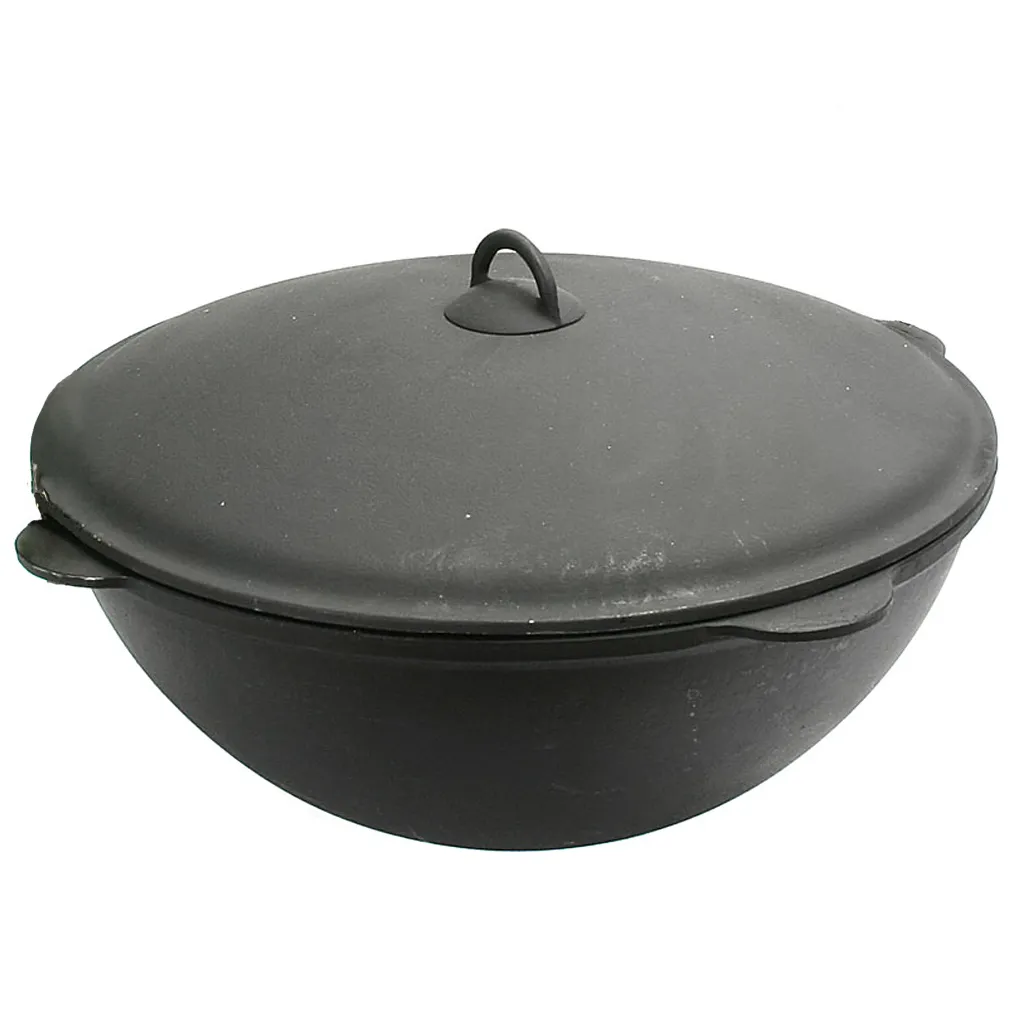 Казан 12 литров, отлично подойдет для дачи или пикника. Чугун за счет равномерного прогрева не позволит еде подгореть.