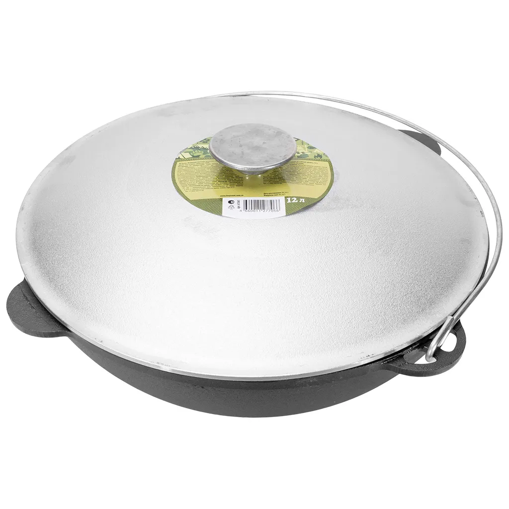 Казан 12 литров, отлично подойдет для дачи или пикника. Чугун за счет равномерного прогрева не позволит еде подгореть.