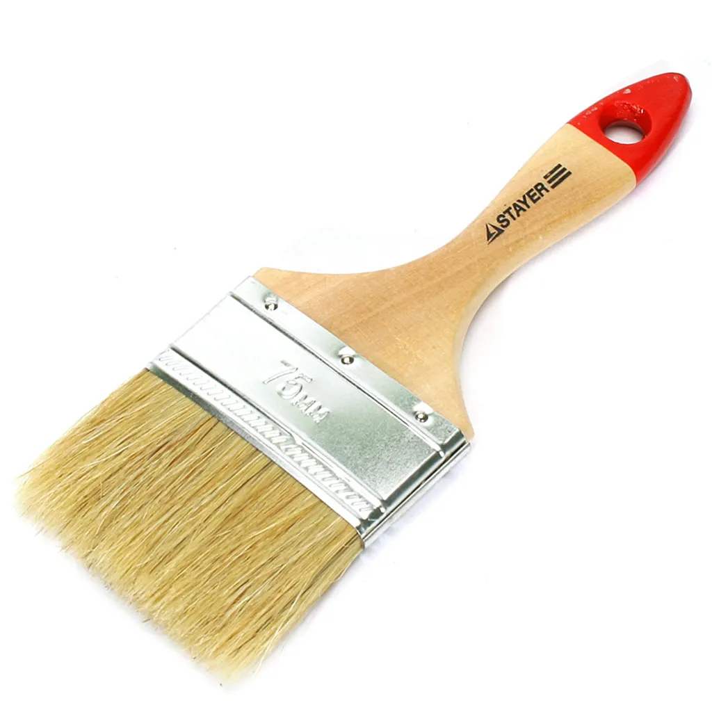 Кисть плоская Stayer Standart 75мм, предназначена для работ с различными видами лакокрасочных материалов: эмали, краски, лаки.