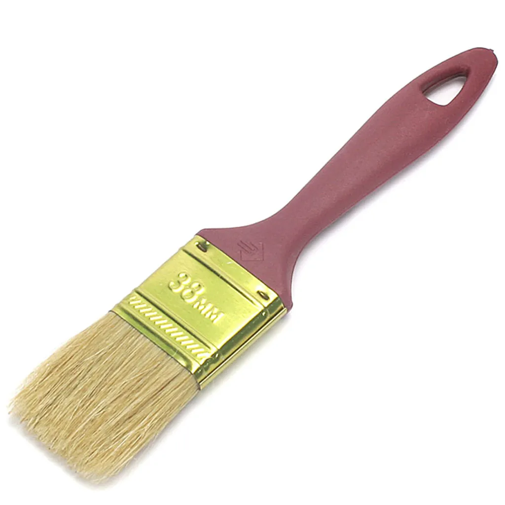 Щетина кисти надежно закреплена стальным бандажом, а наличие удобной пластмассовой рукоятки обеспечит комфортную работу.
