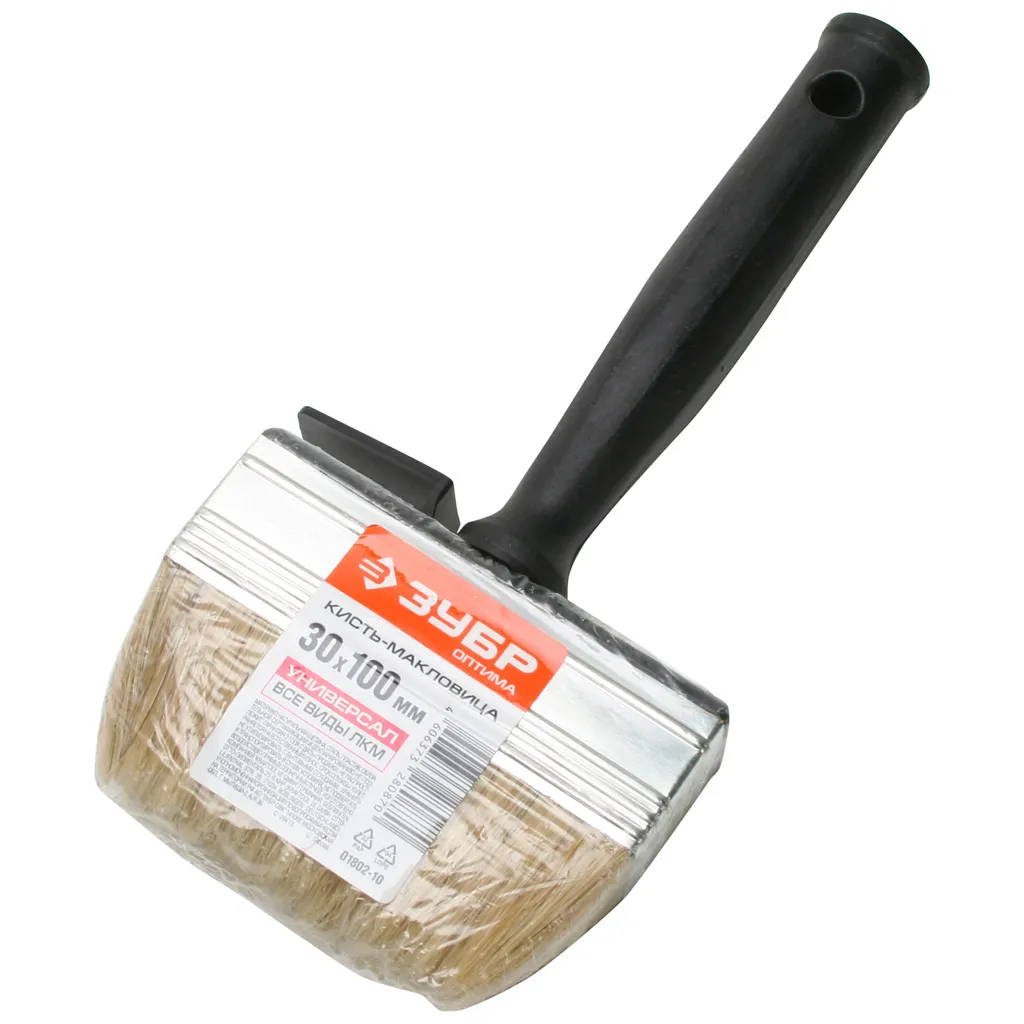 Кисть макловица Зубр Оптима 30мм х 100мм, предназначена для размывки потолков, грунтовки и побелки больших поверхностей, нанесением клеевых составов на обои,
