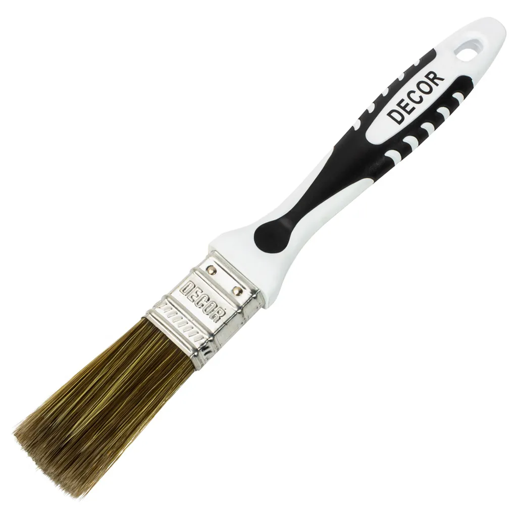 Щетина кисти надежно закреплена стальным бандажом, а наличие удобной пластмассовой рукояти обеспечит комфортную работу.
