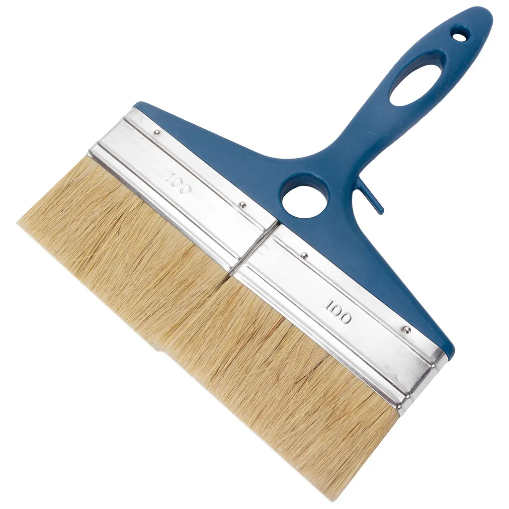 Выемка на ручке служит для закрепления кисти на ведре, баночке для краски и т.д. Натуральная светлая щетина отличается высокой впитываемостью и краскоотдачей. Эргономичная пластиковая ручка обеспечивает комфортное использование.