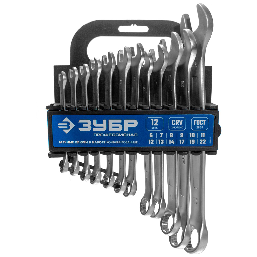 Ключи комбинированные Зубр, набор 12 предметов, хромированные