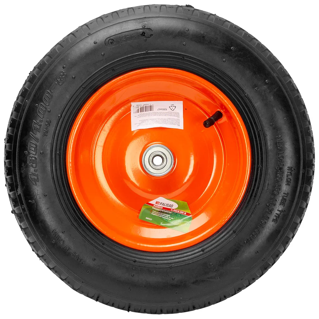 Колесо для тачки, пневманическое является сменным элементом для строительных и садовых тачек. Обеспечивает перемещение грузов и отличную маневренность тачки. Имеет стальной диск и подшипник с посадочным отверстием – 20 мм. Диаметр колеса – 360 мм. Подходит для всех видов тачек, которые имеют диаметр втулки 20мм.