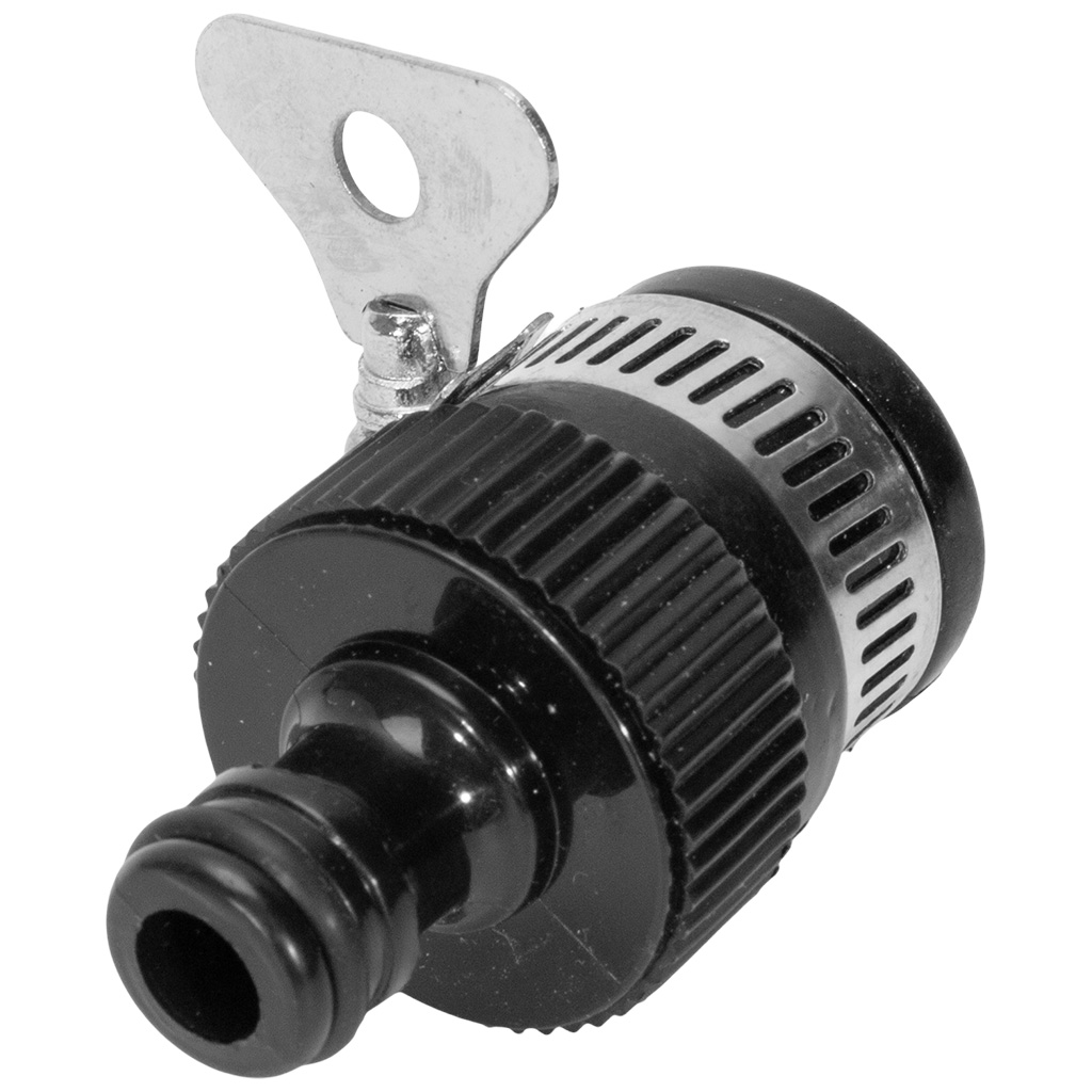 Установка адаптера не требует специального оборудования, что удобно в бытовых условиях на даче или загородном участке. Вид крепления адаптера универсален и быстровыполним. Достаточно затянуть хомут, зафиксировав его на шланге.