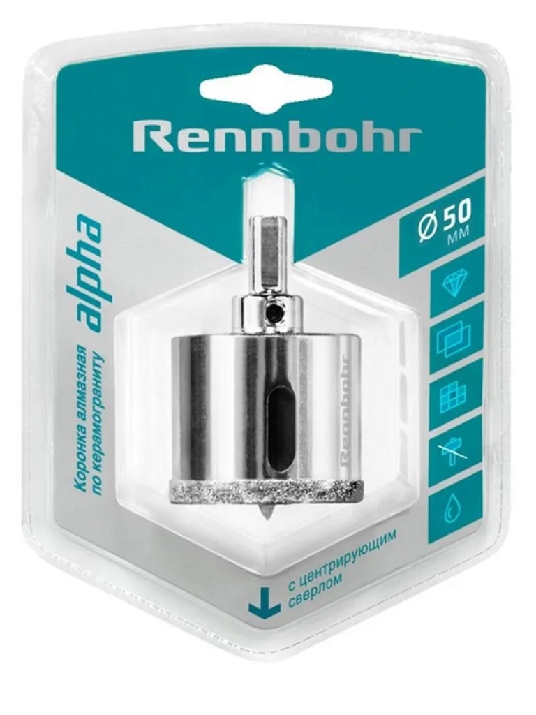 Коронка алмазная Rennbohr, по керамике и керамограниту с центрирующим сверлом 50мм