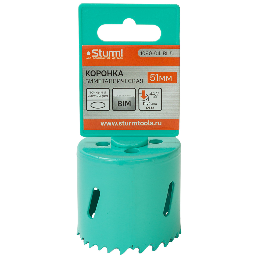 Коронка Sturm! биметаллическая, 51мм, по тонколистовому металлу, центрирующее сверло
