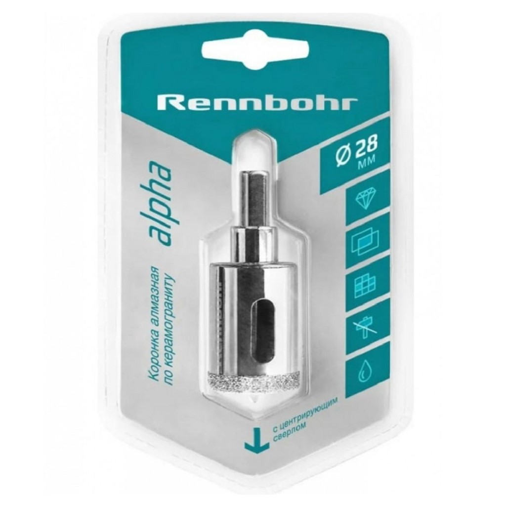 Коронка алмазная Rennbohr, по керамике и керамограниту с центрирующим сверлом, 28мм