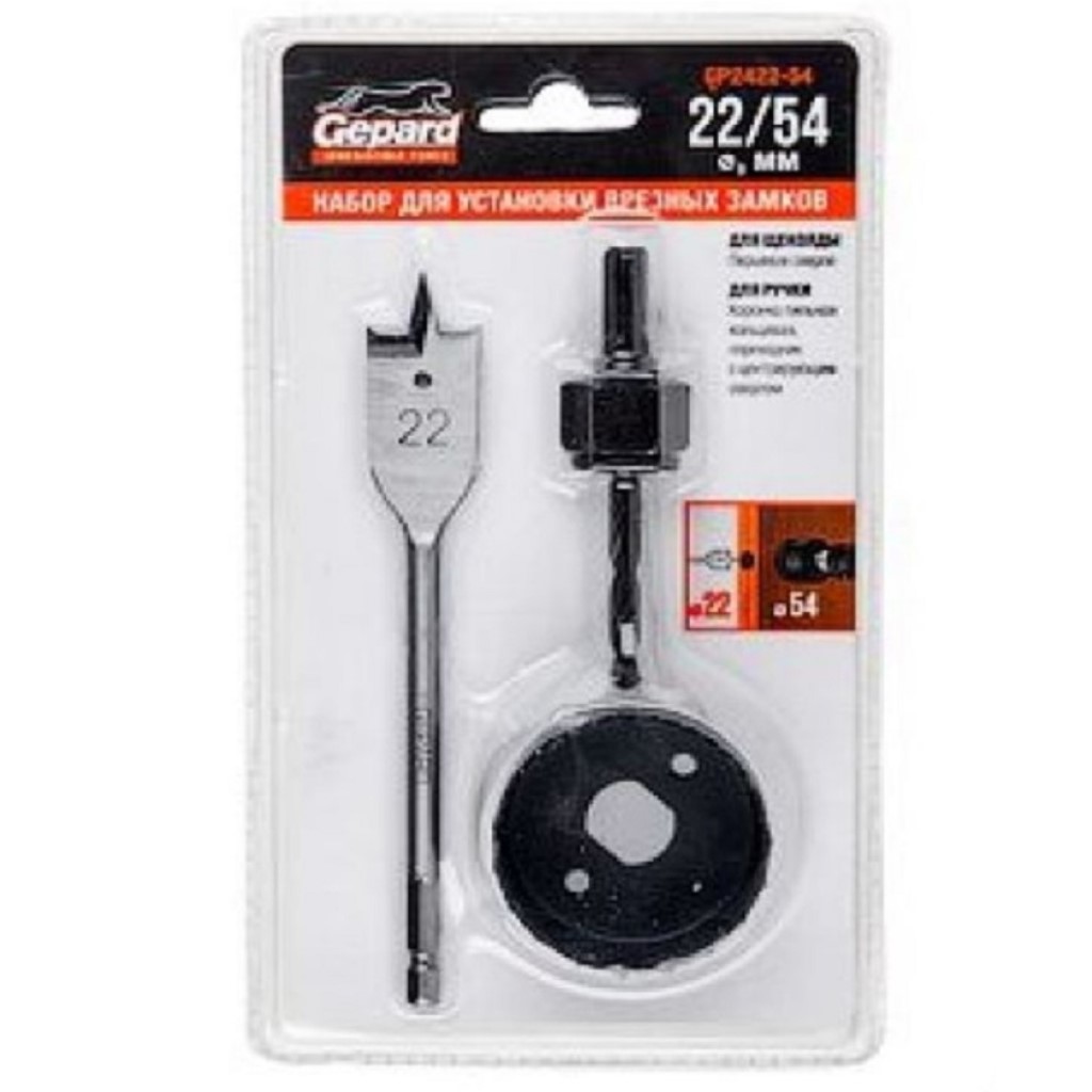 Набор для врезания замков Gepard, применяется для врезки дверных замков, а также для высверливания отверстий в древесине, ДСП, фанере, ламинированных и гипсокартонных плитах, пластиковых панелях. С...