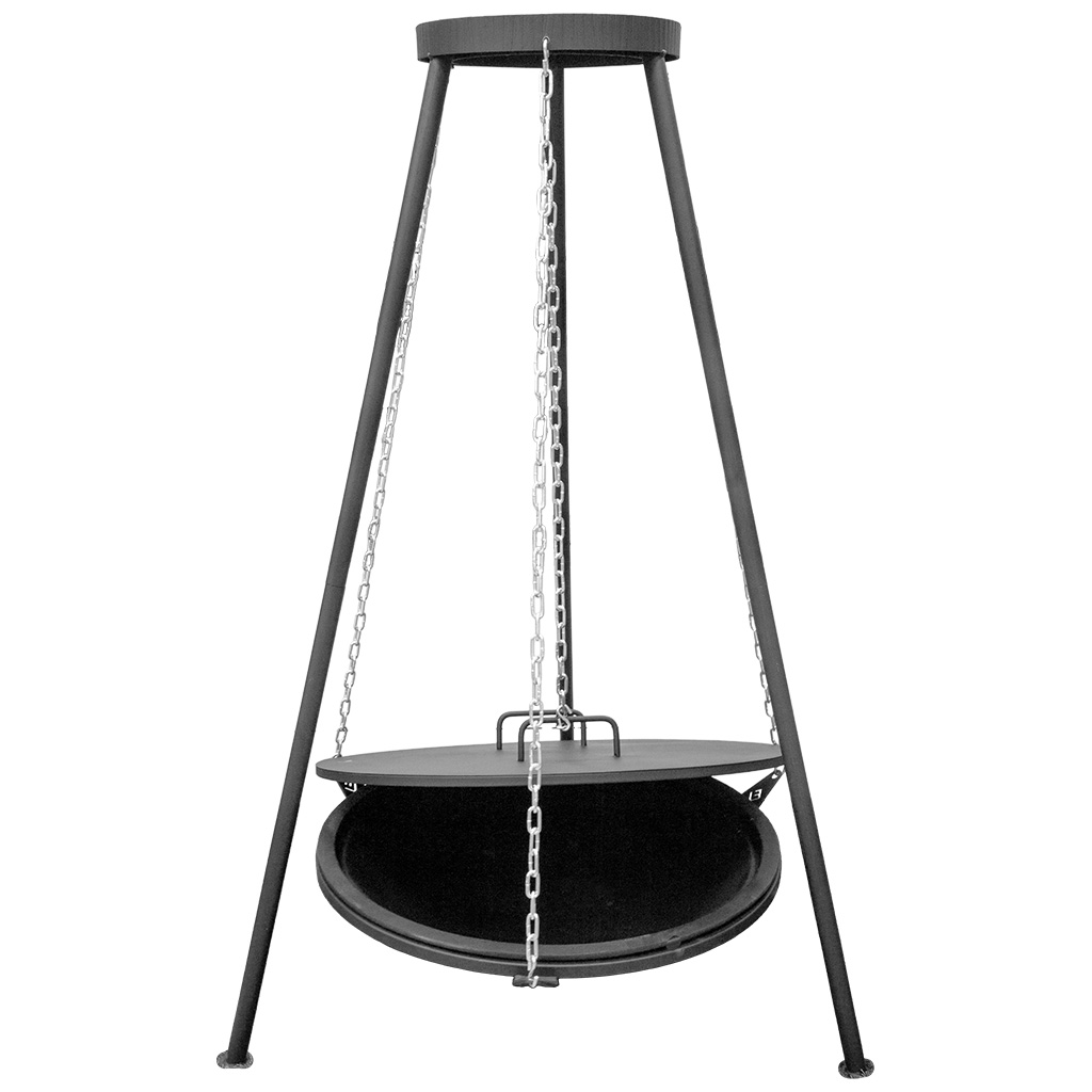 Костровая чаша крепиться на специальные цепочки, с помощью которых можно легко регулировать нужную высоту. А на верхний крючок можно подвесить посуду или даже большого куска мяса для готовки на открыт...