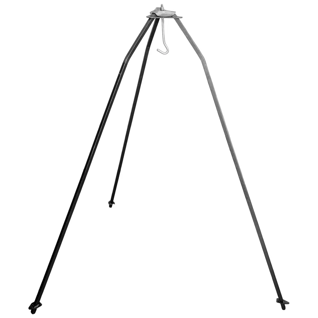 <b>Тренога</b> представляю собой металлическую конструкцию, изготовленную из стержней круглого и квадратного сечения с удобным подвесом посередине. Треноги упрощают приготовление пищи на костре, экономя время и силы, необходимые на поиски подходящих веток для конструирования подобного приспособления. Такая тренога проста в сборке, установке и транспортировке, к тому же ее устойчивость гарантирует безопасность во время приготовления еды. Складные ножки, труба диаметром 14 мм, сталь 2 мм.