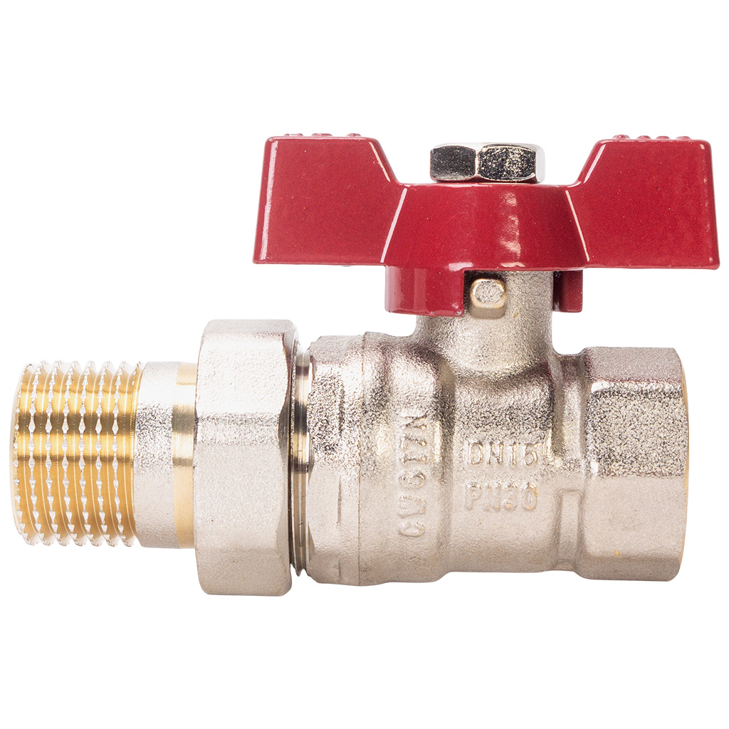 Кран шаровый с американкой для воды TIM, 1/2" г-ш, бабочка