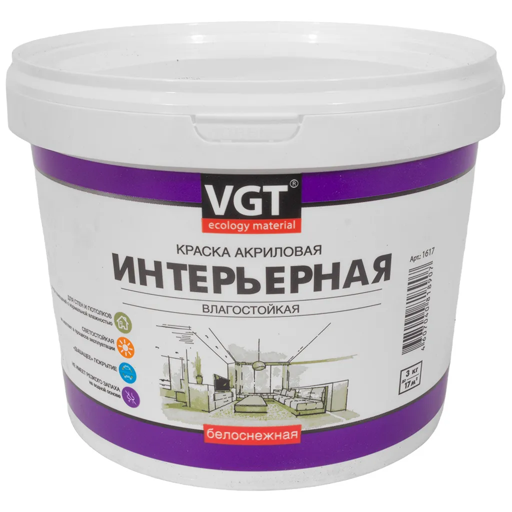 Краска водно-дисперсионная VGT АК-2180, акриловая, 3кг
