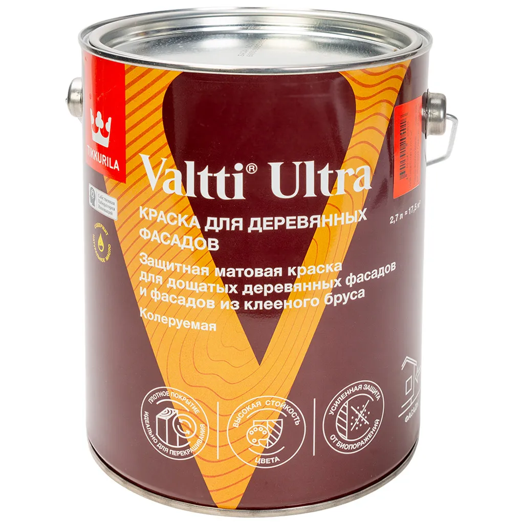 Краска водно-дисперсионная Tikkurila Valtti Ultra, для деревянных фасадов, матовая, база С, 2.7л.