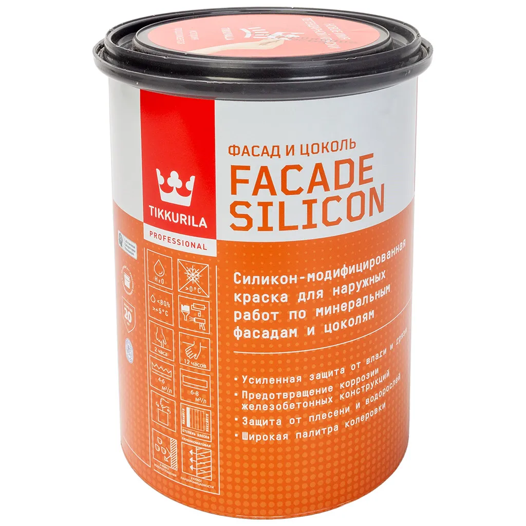 Краска водно-дисперсионная Tikkurila Facade Silicon, фасадная, матовая, база С, 0.9л.