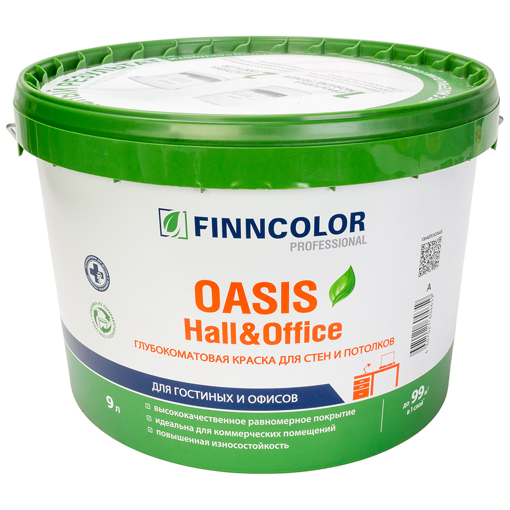 Краска водно-дисперсионная Finncolor Oasis hall/office, для стен и потолка, матовая, база А, 9л.