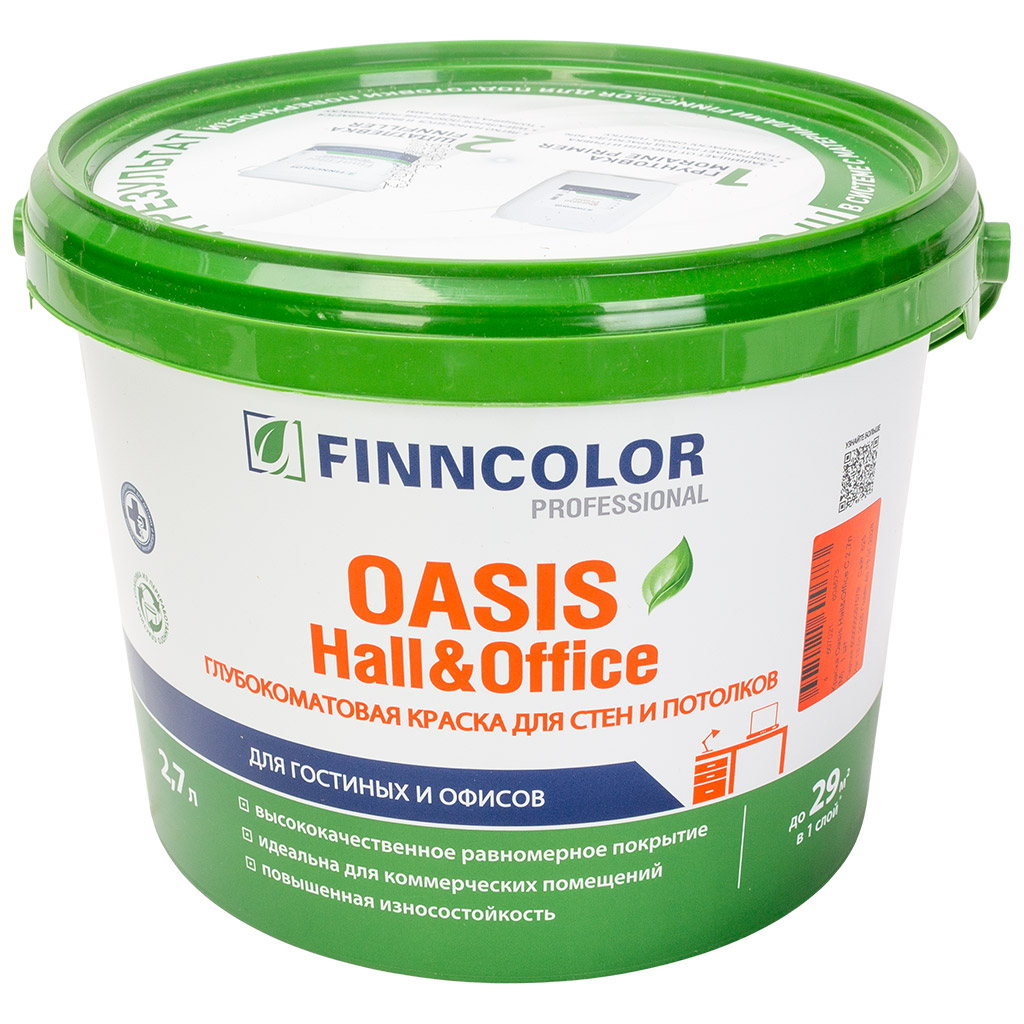Краска водно-дисперсионная Finncolor Oasis hall/office, для стен и потолка, матовая, база С, 2.7л.