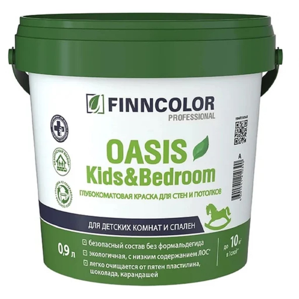Краска водно-дисперсионная Finncolor Oasis Kids Bedroom, для стен и потолка, белая, матовая, база А, 0.9л.
