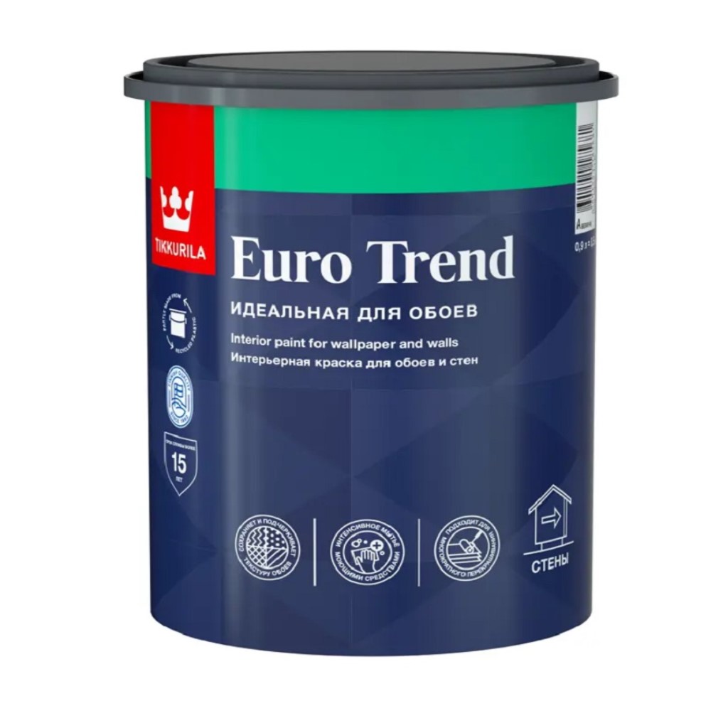 Краска водно-дисперсионная Tikkurila Euro Trend, для обоев и стен, интерьерная, ...