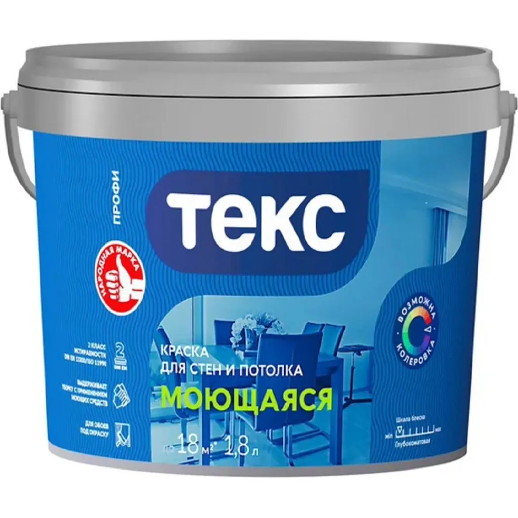 Краска водно-дисперсионная Текс Профи, для стен и потолка, моющая, база A, матовая, бесцветная, 0.9л.