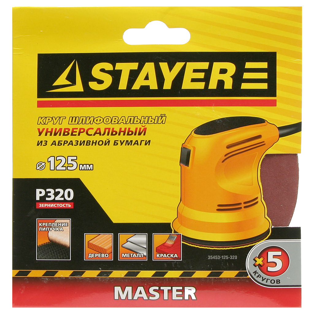 Круг шлифовальный универсальный Stayer Master, d125мм, Р320, 5шт/упак