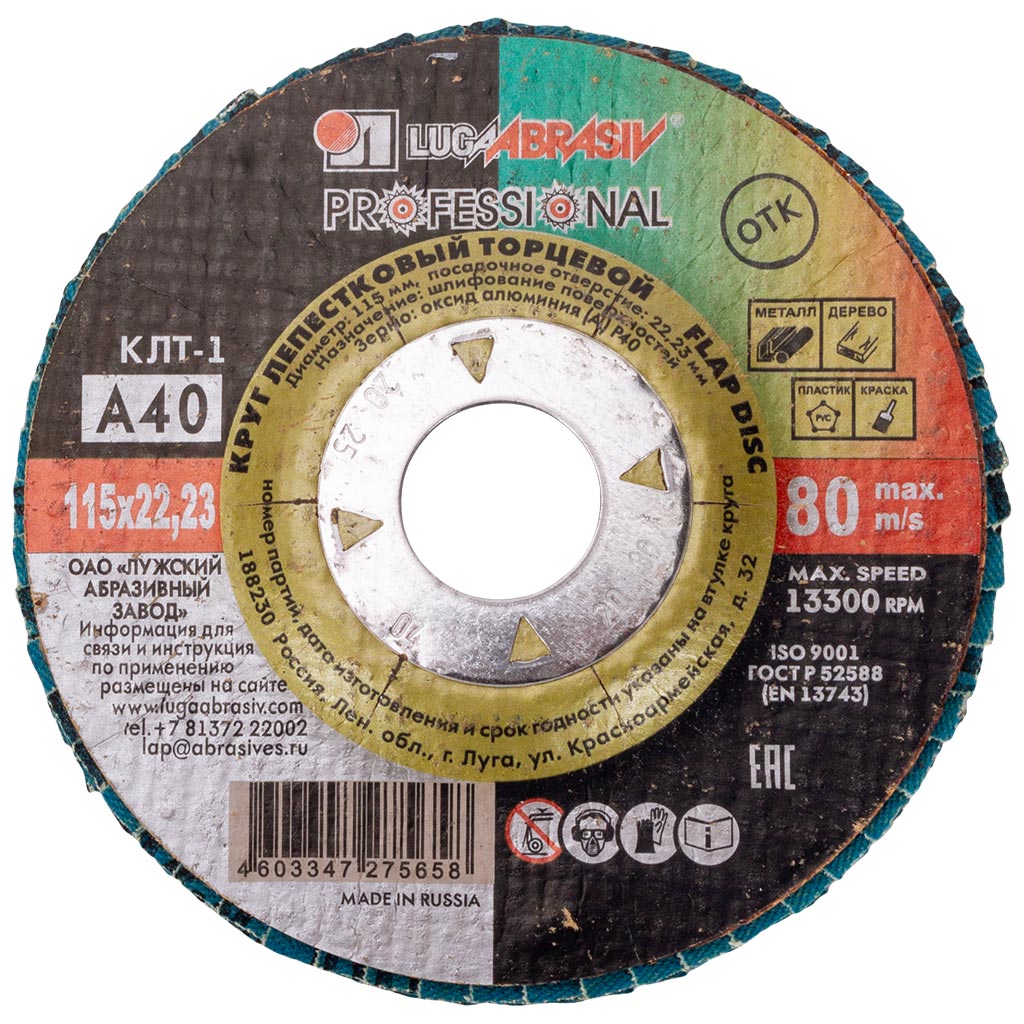 Круг шлифовальный лепестковый Луга, 115х22.2мм, Р40, торцевой