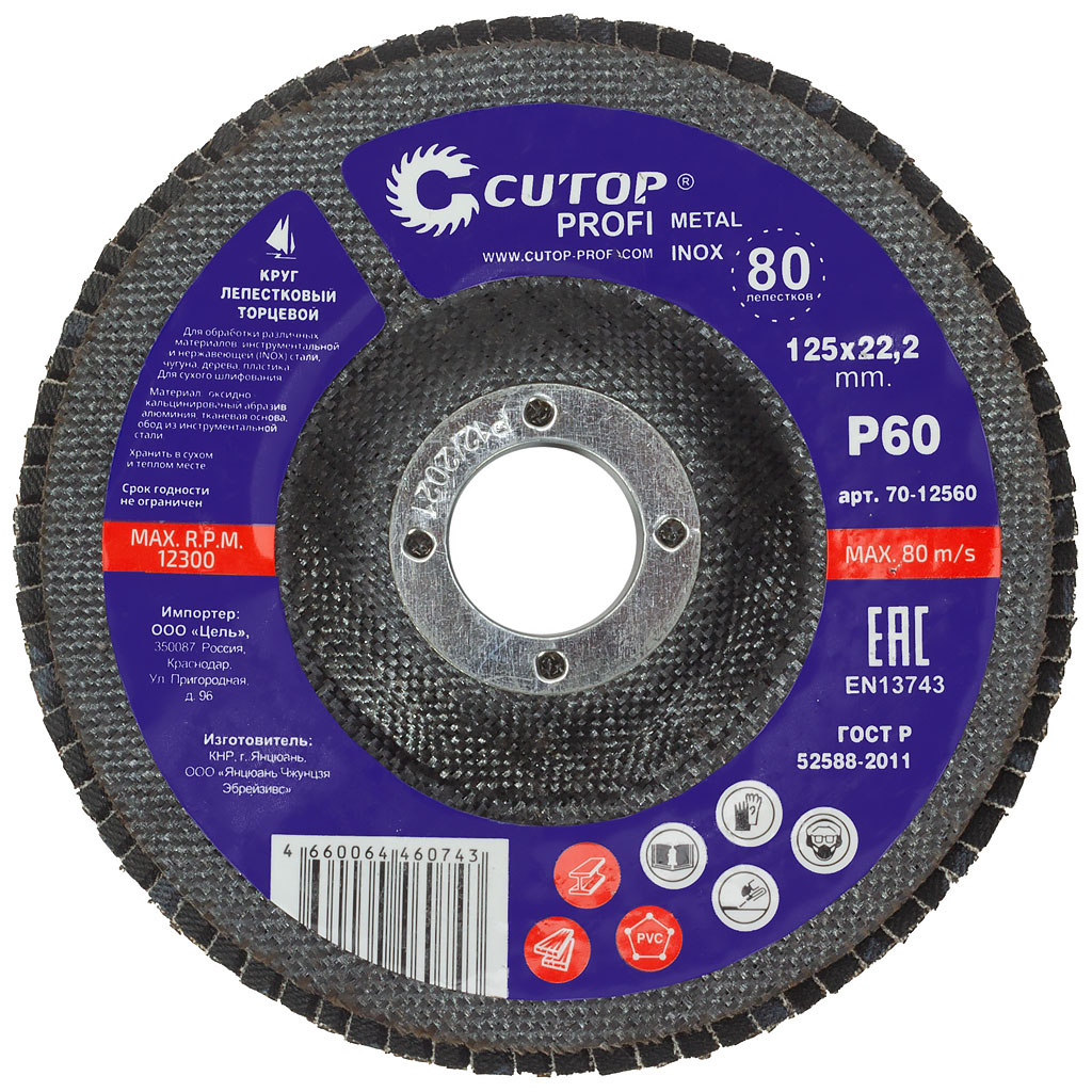 Круг шлифовальный лепестковый Cutop Profi, 125х22.2мм, Р60, торцевой